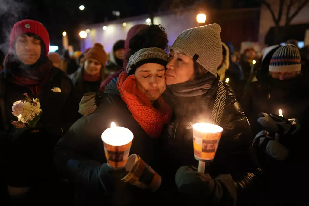 民眾悼念被聯邦執法人員擊斃的男護士。AP圖片