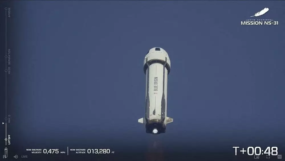 可重覆使用的「新謝潑德」火箭,頂部設有載人艙,2021年以來已經從得州發射了38次短暫的亞軌道飛行,將數十名付費旅客和實驗品送到太空邊緣。