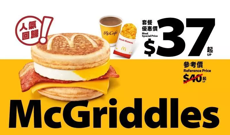 好消息陸續送上,全系列McGriddles 共四款漢堡會繼續於早晨時段供應,包括楓糖班戟脆雞漢堡套餐(配薯餅及飲品)及楓糖班戟豬柳漢堡套餐(配薯餅及飲品)均以超值優惠價$35供應,顧客無論經麥當勞App,或直接到餐廳的自助點餐機或櫃檯點餐,均可享受此限時超值優惠。至於楓糖班戟豬柳蛋漢堡(配薯餅及飲品)及楓糖班戟煙燻煙肉蛋漢堡(配薯餅及飲品),則以套餐優惠價$37起供應,帶來夢幻鹹甜滋味。
