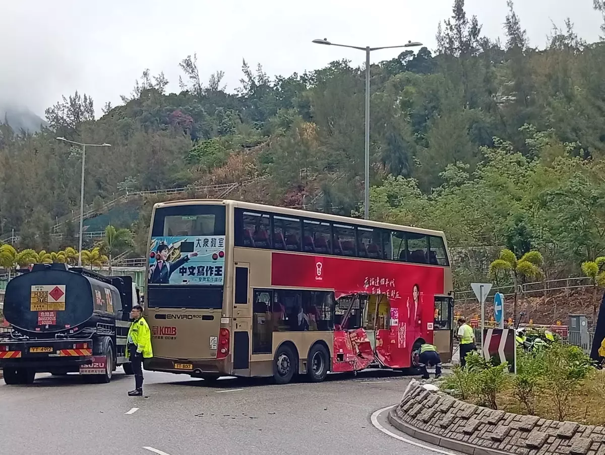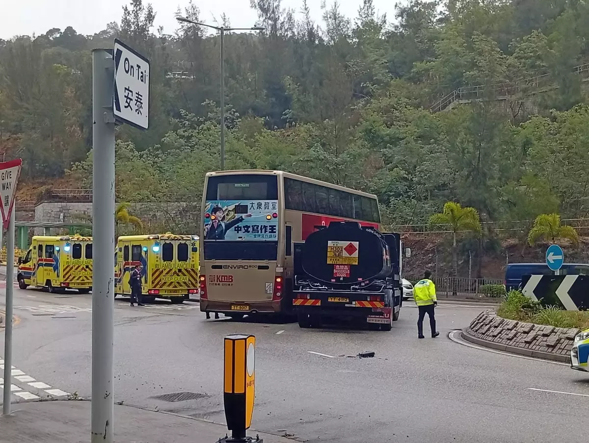 秀茂坪有巴士與運油車相撞,3人受傷。