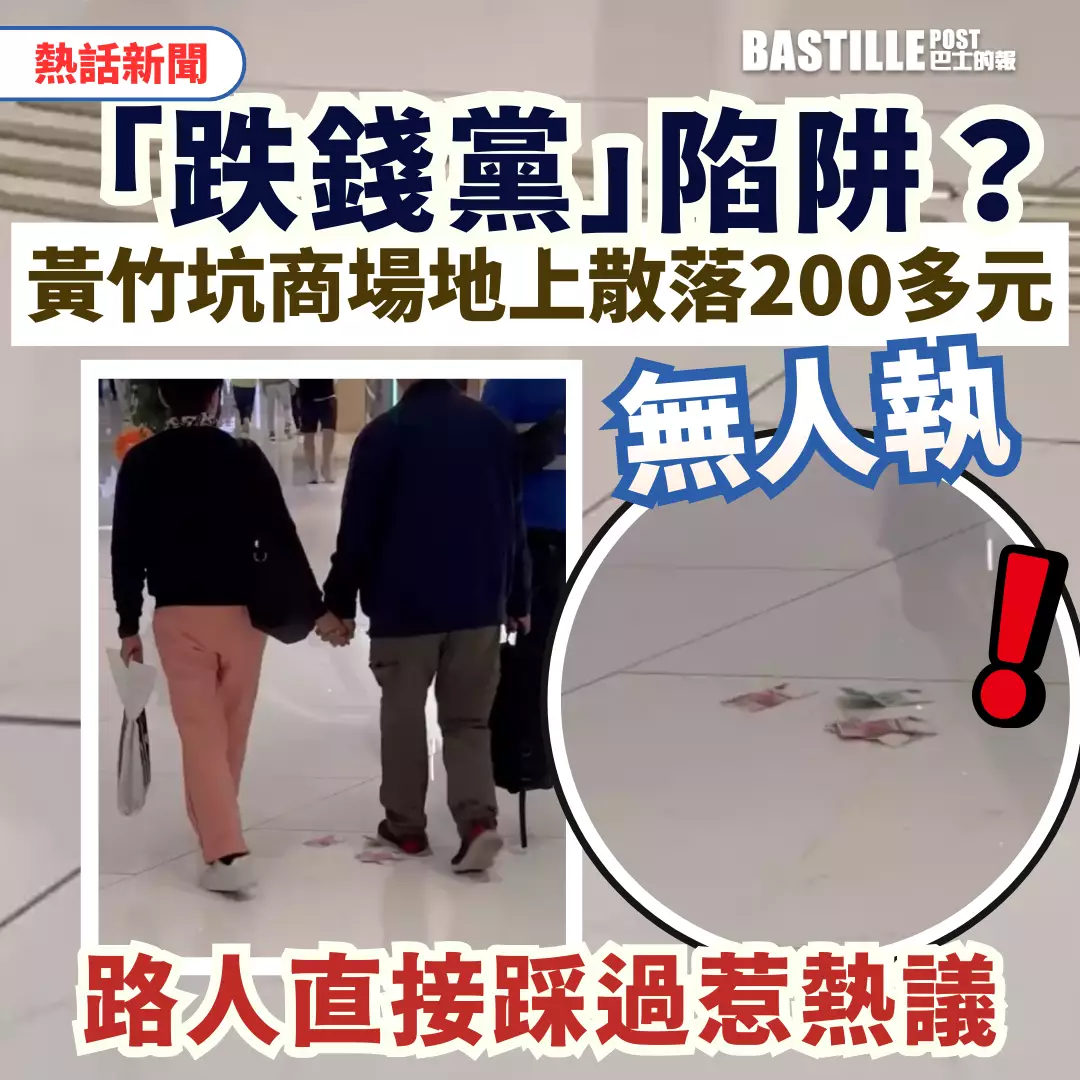黃竹坑商場地上散落200多元無人撿拾。影片截圖
