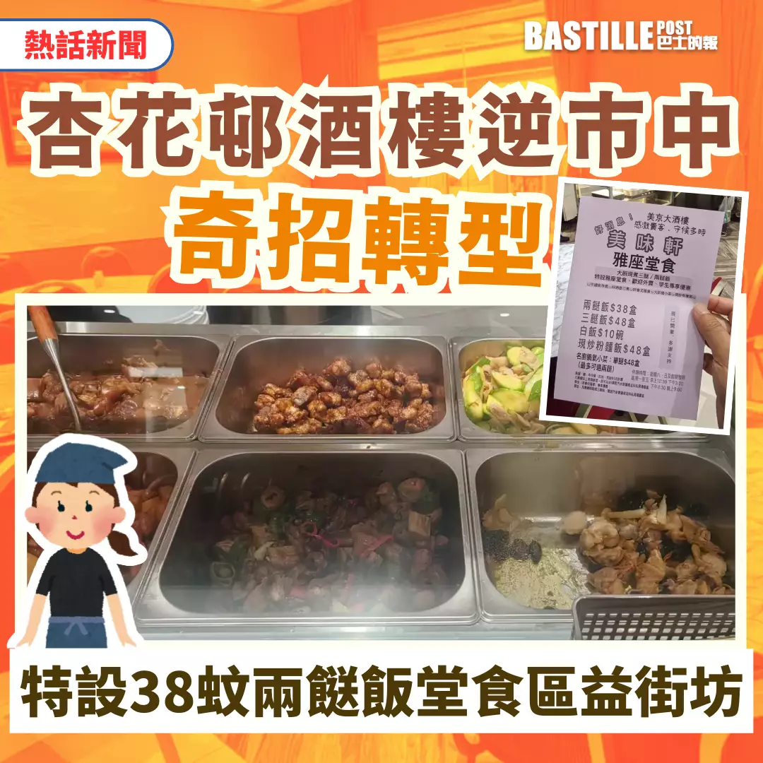 港島杏花邨的酒樓為應對市道不景,日前推出奇招轉型。據網友爆料,位於杏花新城商場的「美京大酒樓」近日在正門位置劃出區域,增設兩餸飯部,並在酒樓內提供堂食區,最平一盒兩餸飯售38元,引起街坊及網民熱議。