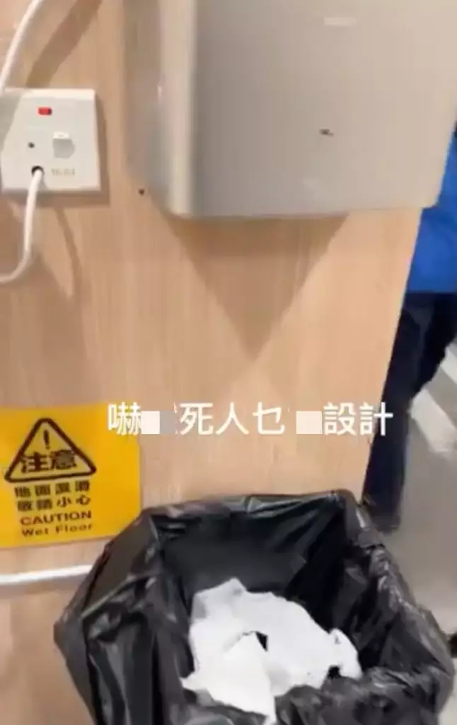 樓主在社交平台Threads平台上傳短片,並直言「嚇X死人乜X設計」。影片顯示,她將雙手伸入乾手機下方烘乾。機器一經啟動,垃圾桶內的廢棄廁紙立即被強風捲起,亂舞飛揚,甚至衝上機器頂部。原本已清洗乾淨的雙手,非但未能有效烘乾,反而可能因飛散的廁紙而再度污染,令她感到極度荒謬與反胃。