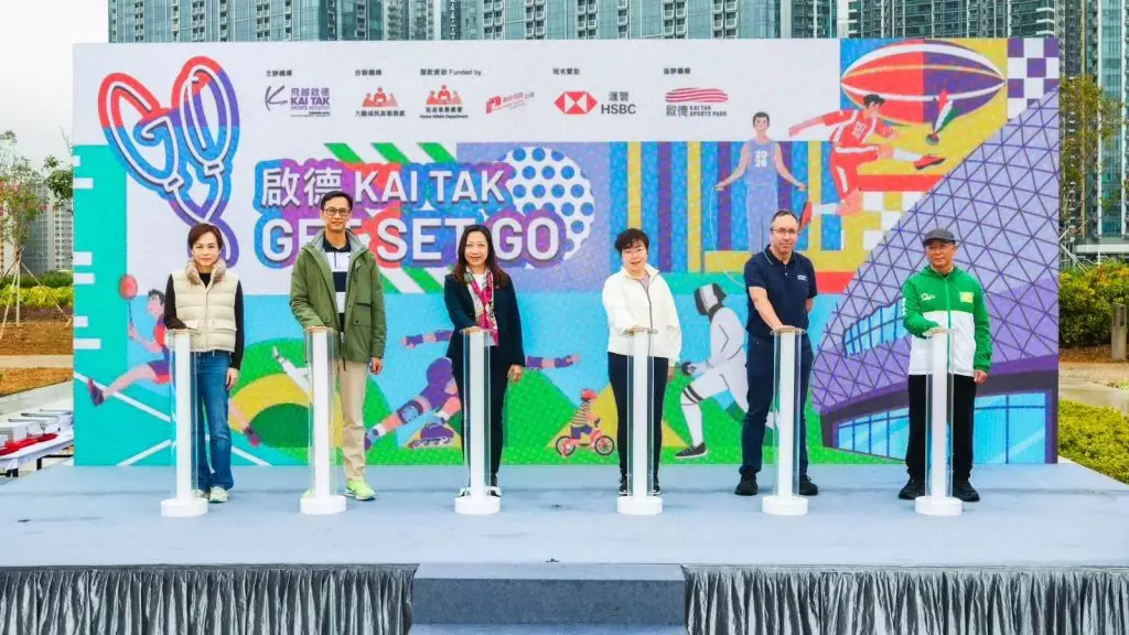「滙豐呈獻: 啟德GET SET GO 2026」由一眾主禮嘉賓包括民政事務總署署長杜潔麗、九龍城民政事務專員蔣志豪、文化體育及旅遊局總助理秘書長(體育及康樂)葉麗珊、啟德體育園有限公司行政總裁莊澤基(Mr. John Sharkey)、 滙豐香港區財富管理及個人銀行卓越理財客戶策劃及戰略合作主管楊思敏及香港遊樂場協會主席李傑之。