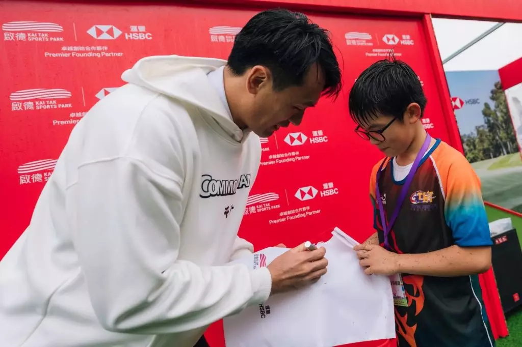 前七人欖球運動員姚錦成獲啟德體育園卓越創始合作夥伴滙豐邀請,親臨現場參與互動分享會,吸引多位市民參與。