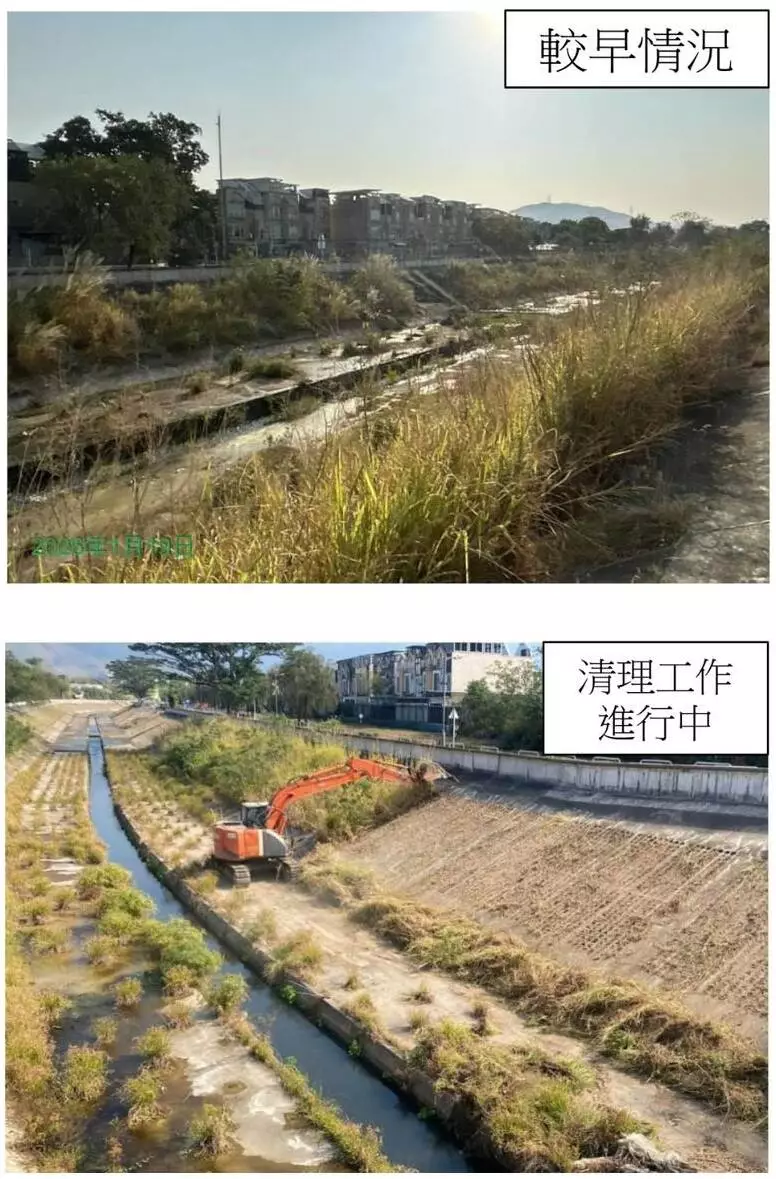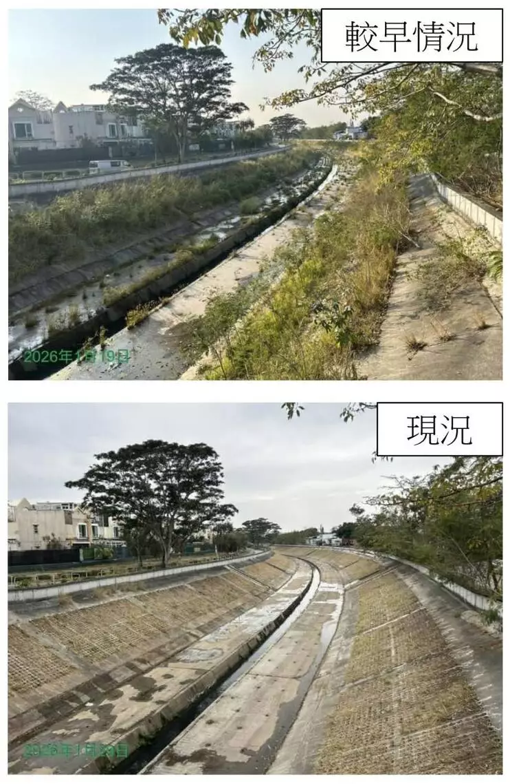 針對錦田河,渠務署在社交網站說,已於25年11月展開河道清理工作,目前進度理想,整體已清理約4000噸淤泥、雜草及垃圾,估計尚餘1000噸需要清理,會於3月完成,署方早前收到元朗區議會反映錦田河上游個別位置有雜草及垃圾堆積情況,已優先處理有關個案,會盡快完成。