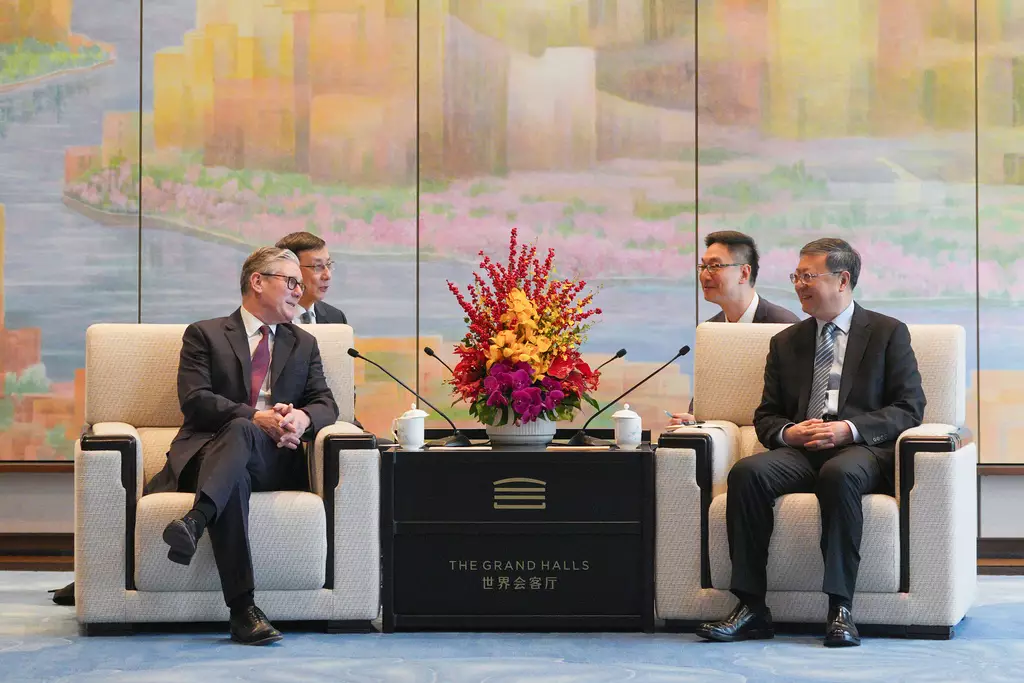 施紀賢31日與上海市委書記陳吉寧會面。陳吉寧說中英兩國都是聯合國安理會常任理事國,亦是世界主要經濟體,在當今全球挑戰不斷增加的形勢下,加深兩國交流與合作,符合兩國各自利益,亦有利於整個世界。