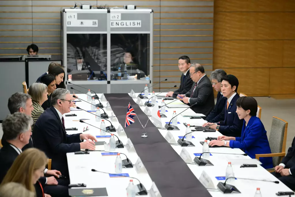 日本首相高市早苗在官邸,與到訪的英國首相施紀賢舉行會談。