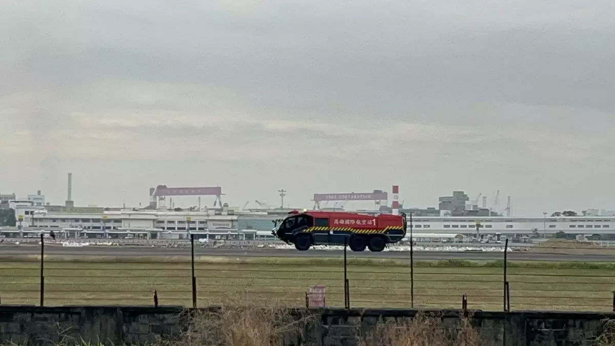 國泰航空由高雄飛往香港的CX449航班,因技術原因於起飛後折返高雄機場,有消防車在附近戒備。FB群組「高雄機場航空器資訊交流」圖片