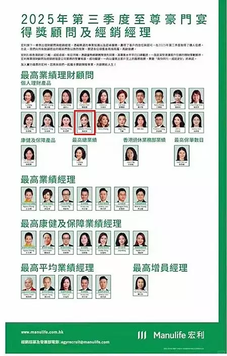 據悉,「百萬圓桌(MDRT)」被譽為保險界的奧斯卡,會員資格只授予一年,競爭極其激烈。按2025年標準,MDRT、COT及TOT的收入門檻分別高達816,200港元、2,448,600港元及4,897,200港元。能夠躋身TOT行列者,已屬全球頂尖精英,而張利華更成為公司最高業績理財顧問之一,實力不容小覷。