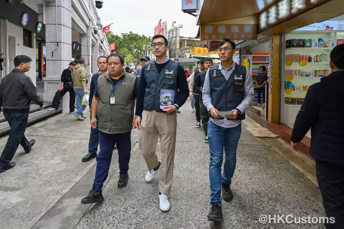 農曆新年將至,香港海關聯同中英街管理局星期二(2月3日)於中英街展開巡邏行動,防範和打擊違法行為,確保市場秩序。海關人員並向商戶派發單張,提醒他們遵守《商品說明條例》及新修訂的《應課稅品條例》,切勿售賣冒牌物品或私煙。