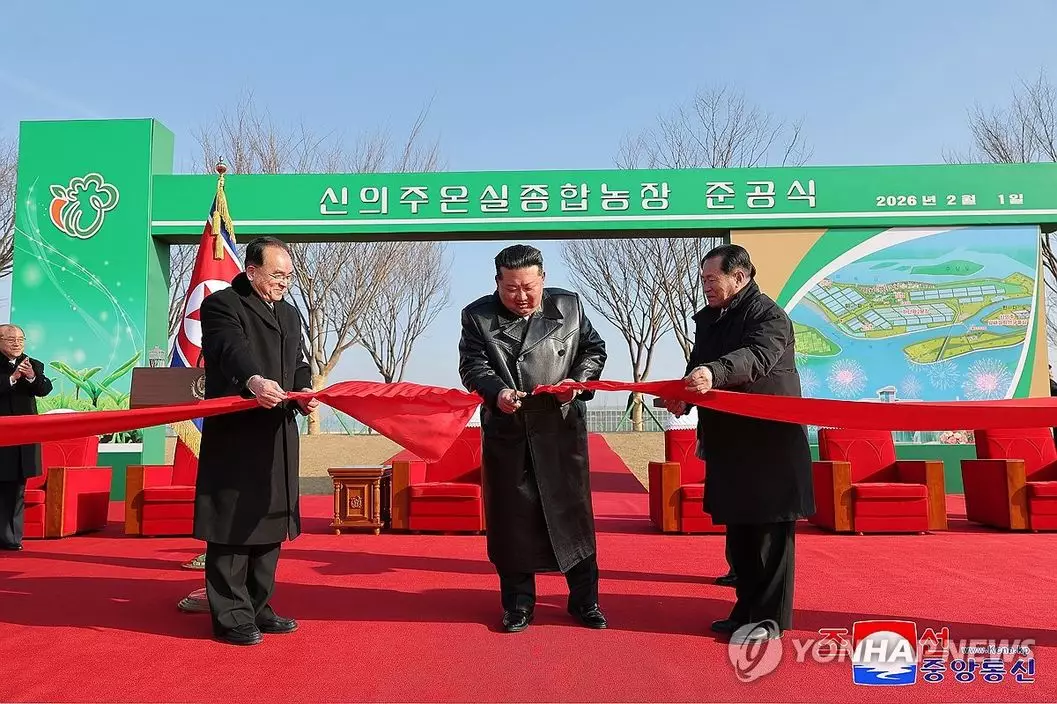 金正恩出席位於平安北道新義州的溫室綜合農場竣工儀式。朝中社圖片