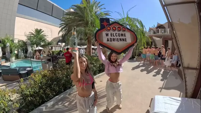 此外,明晚(3日)二人駕臨銷金窩拉斯維加斯出席著名的日間池畔派對,Adrienne以一襲超性感Deep V泳衣出場,她還跟在場外籍男士大玩騎膊馬落水,非常投入。拉斯維加斯的池畔餐桌服務收費屬世界頂流,開枱最低消費由3,000美金到50,000美金不等(約23,000港元至39萬港元)。拉斯維加斯日與夜,二人晚間繼續clubbing,夜店外雖然排完長長的人龍,依然難不到Adrienne,她口出豪言說︰「衍峰你唔使驚,一定唔需要你排隊,因為我成世人去club都未排過隊。」想知道Adrienne到底有何本事,就要留意節目播出。