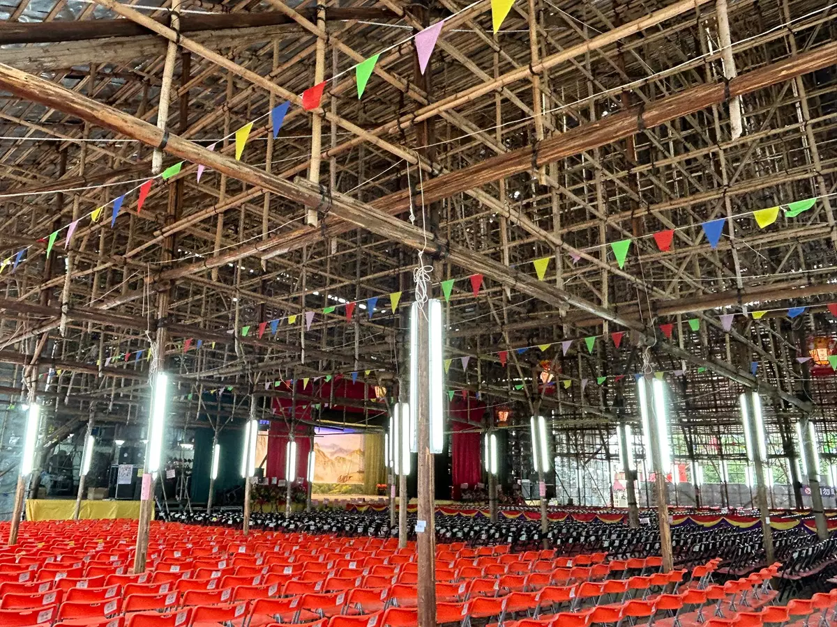 元朗錦田鄉酬恩演戲暨美食嘉年華神功戲戲棚。巴士的報記者攝