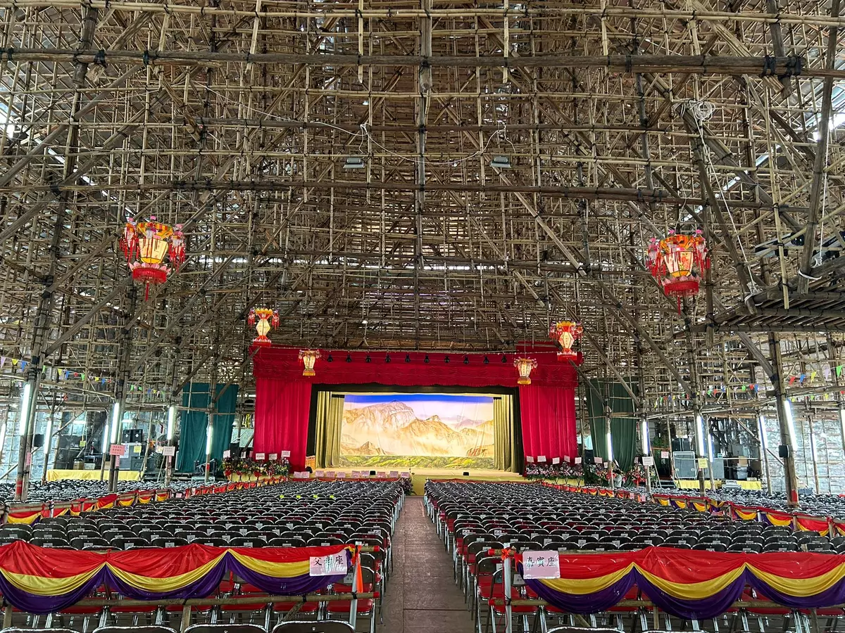 數以萬計的竹竿交錯攀升,構建出凌空而起的龐然舞台。元朗錦田早前舉辦十年一屆的酬恩建醮,高逾30米的巨型竹棚,蔚為奇觀,獲健力士認證為「全球最大臨時竹構祭壇」。雖然建醮一系列活動已落幕,但以黎志明師傅為首的一班搭棚匠人,憑巧手把醮棚化身爲粵劇名伶輪番獻藝的神功戲棚,不單讓觀眾可浸透在戲曲古韻中,也默默訴說着一個26載文化傳承的香港故事。