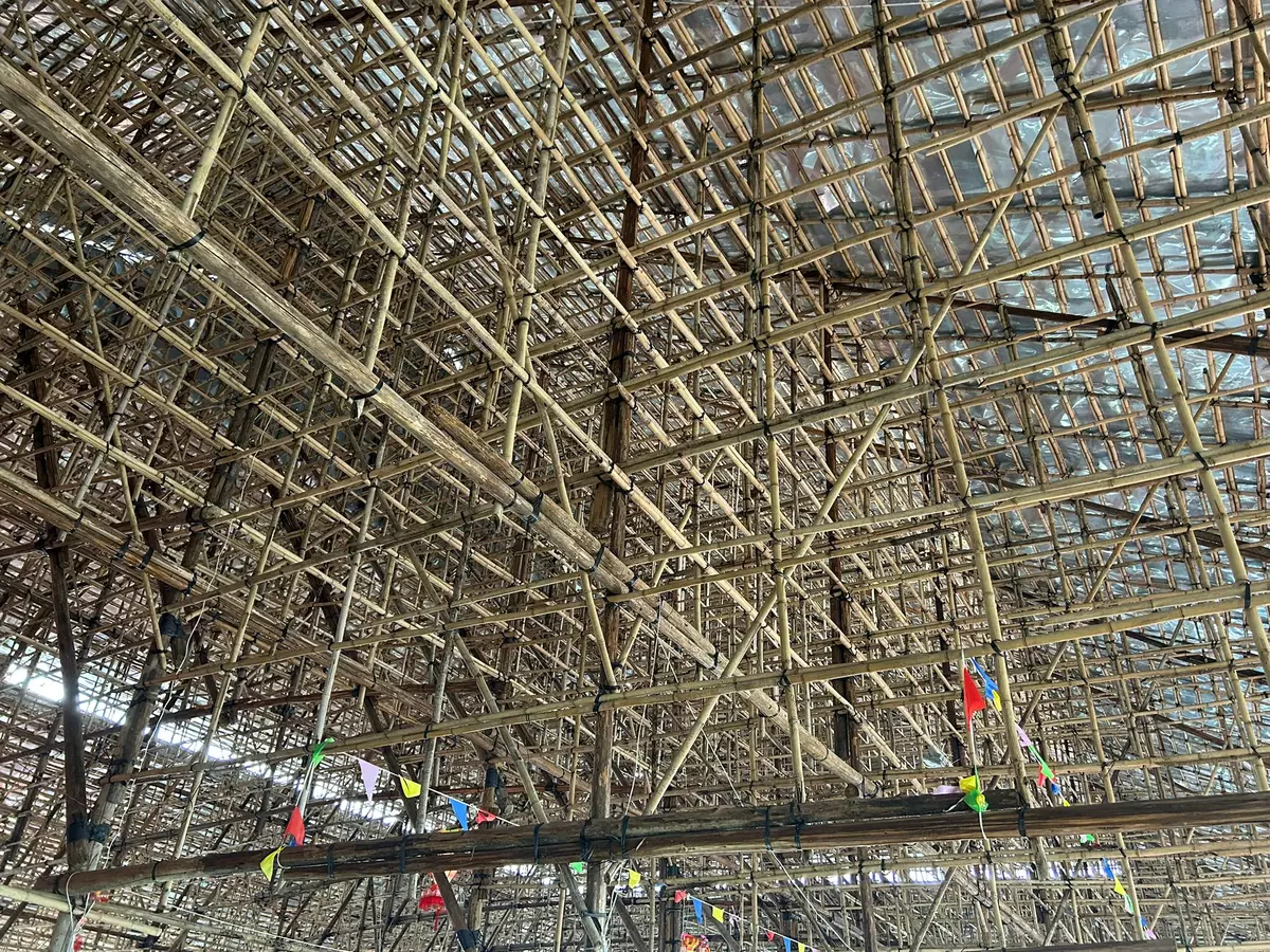 黎師傅表示,像今次在元朗錦田搭建的巨棚,便是巧借竹棚的尺寸靈活性,成功實現高度、重量、空間跨度的三重突破。