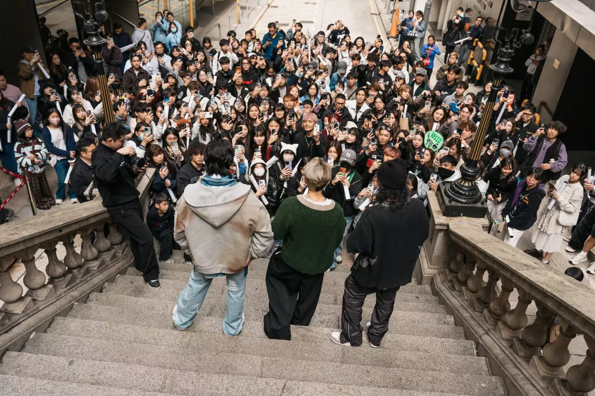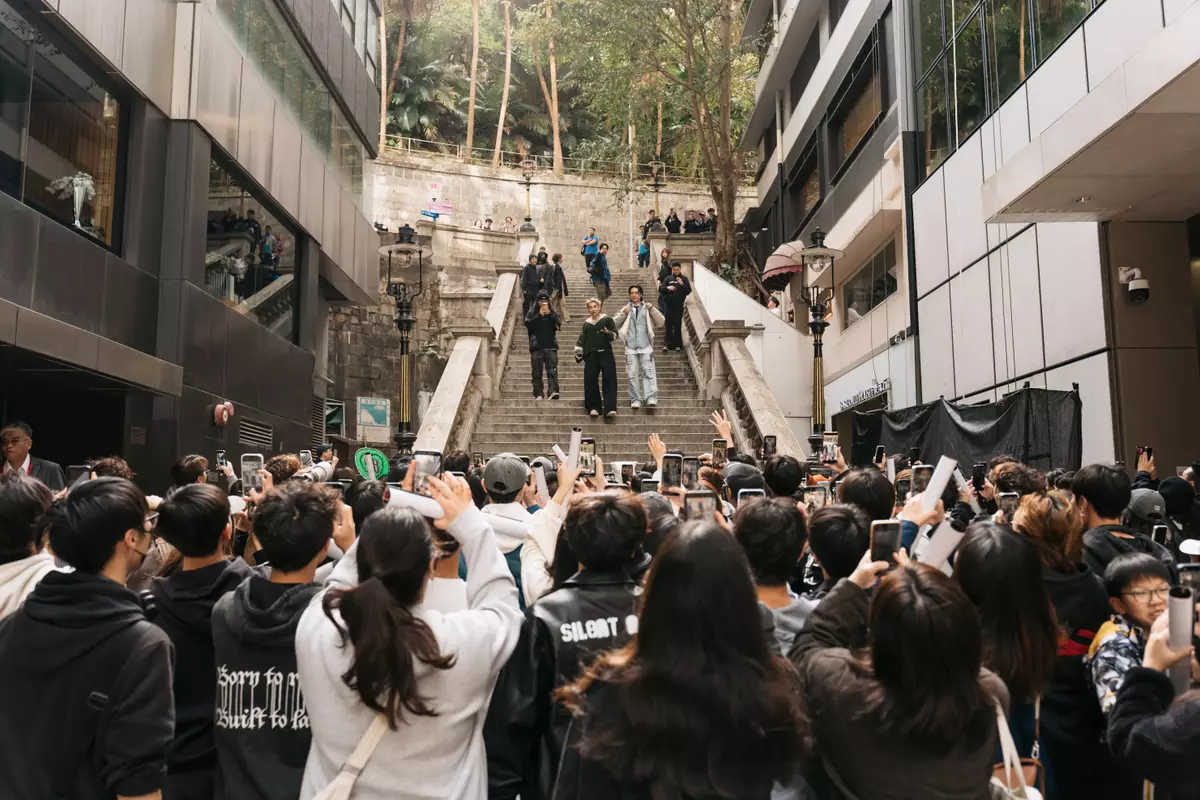獨立歌手Tyson Yoshi新歌《追 CHASING THE WIND》微電影於前日上架後,引起網友熱烈討論,尤其是對游學修與張文傑(German)的演出更是讚口不絕,連客串演出的結他手Teddy Fan亦成為微電影中的「黃金畫面」,成為城中話題之作!有見及此,Tyson昨日專誠與German及導演何圖現身中環都爹利街石階(煤氣燈街)大派海報,吸引過百Fans到場展開「激情對話」,猶如微電影分享會,場面熱鬧!Tyson說:「我刻意挑選這個地方跟大家見面,因為煤氣燈及石階均是經典地標,很多經典電影與劇集的重頭戲也在都爹利街發生,雖然今次微電影未能在此取景有點可惜,但能夠在這裡解構《追 CHASING THE WIND》微電影也別有一番風味!」