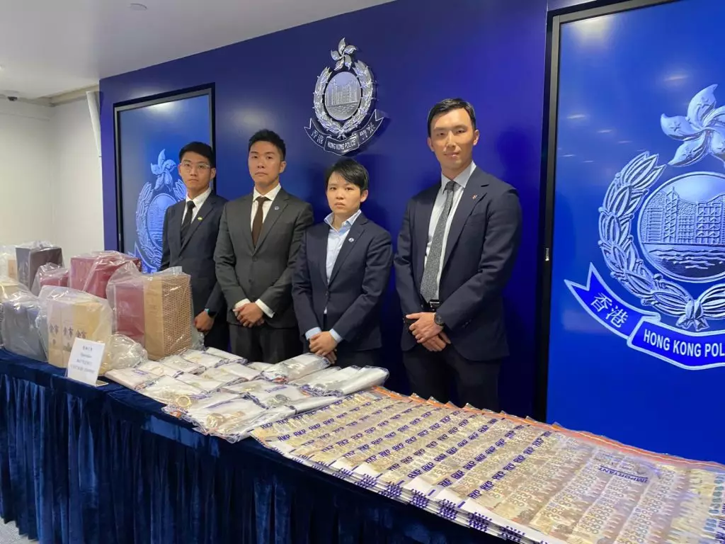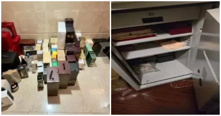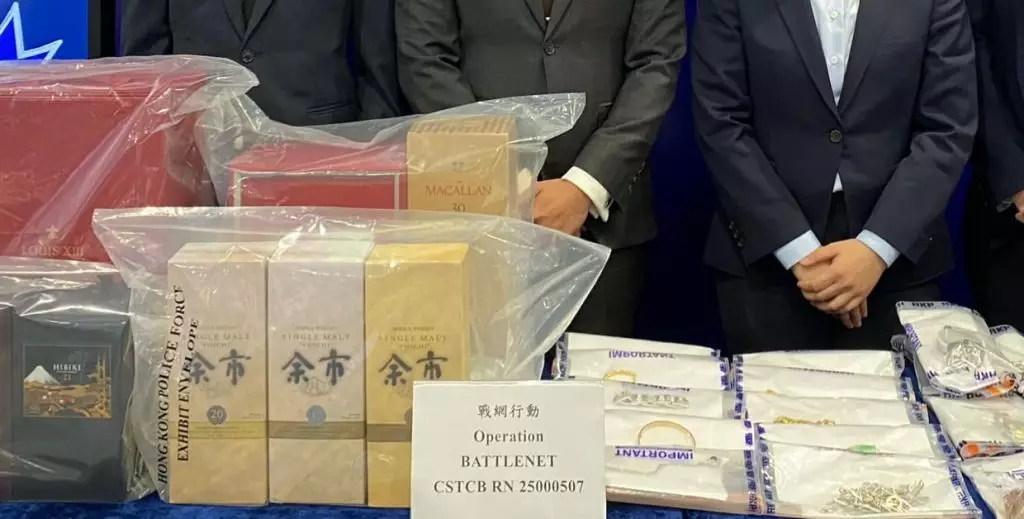 警方檢獲100萬港元現金、13隻名貴手錶、過百支名貴烈酒及其他名貴首飾,檢獲證物總值超過600萬港元。