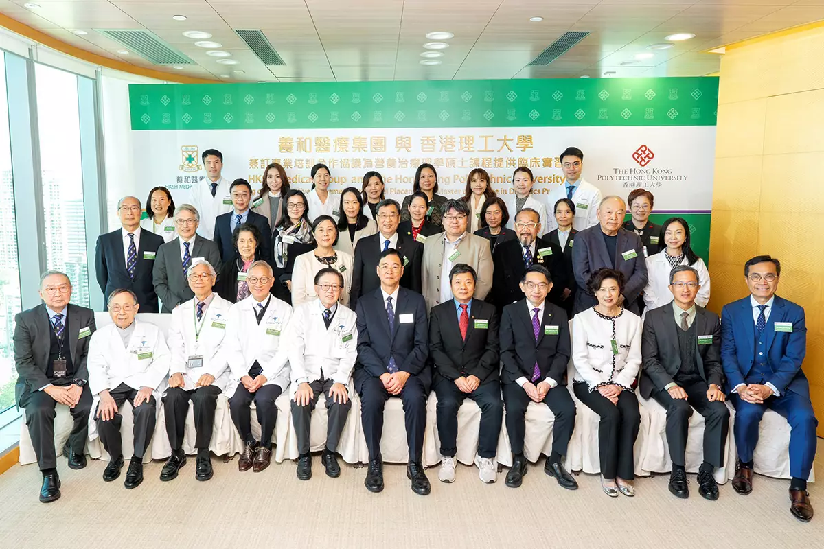 隨着本港人口老化加劇,對營養師等醫療保健專業人員的需求持續上升。為回應社會需求,香港理工大學(理大)於 2025/26 學年開辦營養治療理學碩士課程,致力培養新一代營養專才。理大今日與養和醫療集團(養和)簽署合作協議,為有關課程學生提供臨床實習機會。這次合作標誌着雙方在培育營養專才方面邁出重要一步,攜手為本地醫療、食品業界、科研、教育及公共衛生等領域培養兼具專業知識與實踐經驗的營養人才,造福社會。