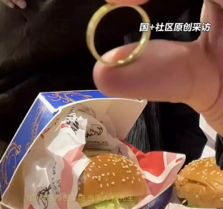 驚喜變驚嚇!湖南一名人夫將金戒指藏漢堡給妻子送結婚週年驚喜,結果對方卻誤吞入肚緊急入院檢查,所幸翌日自然排出。