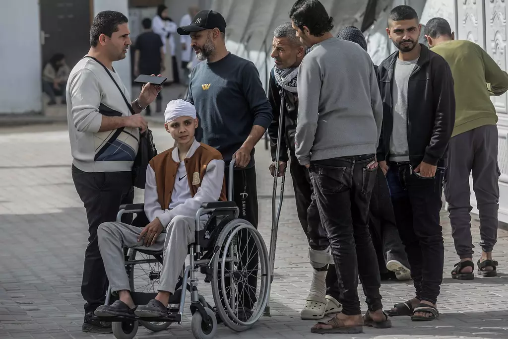 有巴勒斯坦患者在紅新月醫院院內等待,準備經由拉法邊境口岸從加沙走廊撤離,前往國外接受治療。AP圖片