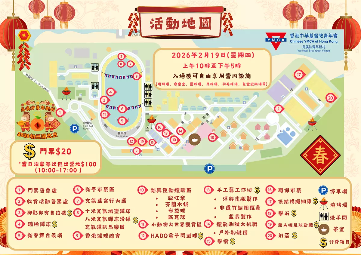 香港中華基督教青年會(YMCA)轄下的烏溪沙青年新村將於2月19日(年初三)舉行年度開放日,市民只需支付20元入場費,即可免費享用營內多項設施及參與營地活動,現場更設有近70檔新春攤位及多項精彩表演,適合一家大小共度新春。