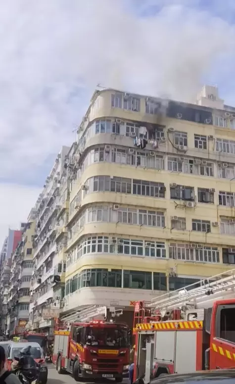 旺角山東街71號一幢唐樓有單位起火,冒出黑煙。FB車cam L(香港群組)圖片