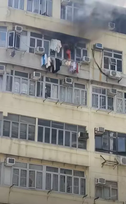 勇石樓一個單位冒出濃煙,消防到場將火救熄。FB圖片