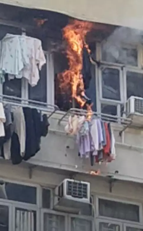 旺角山東街71號一幢唐樓有單位起火,火舌燒著窗外衣服。FB車cam L(香港群組)圖片