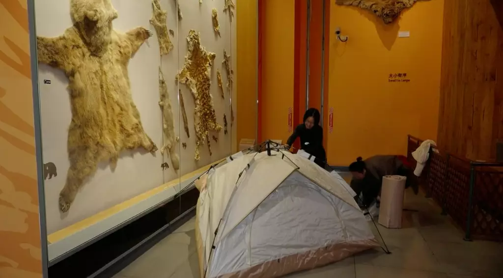 上海自然博物館向每組家庭提供長約2米、寬約1.5米的帳篷以及氣墊、毛絨蓋毯等裝備,幫助游客搭建相對獨立的夜宿空間。許多家長坦言,相較於標準化的酒店服務,夜宿活動的住宿條件較為簡單,但館方盡可能考慮和滿足了游客需求。