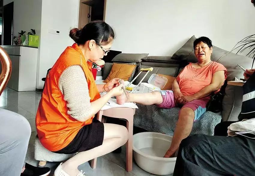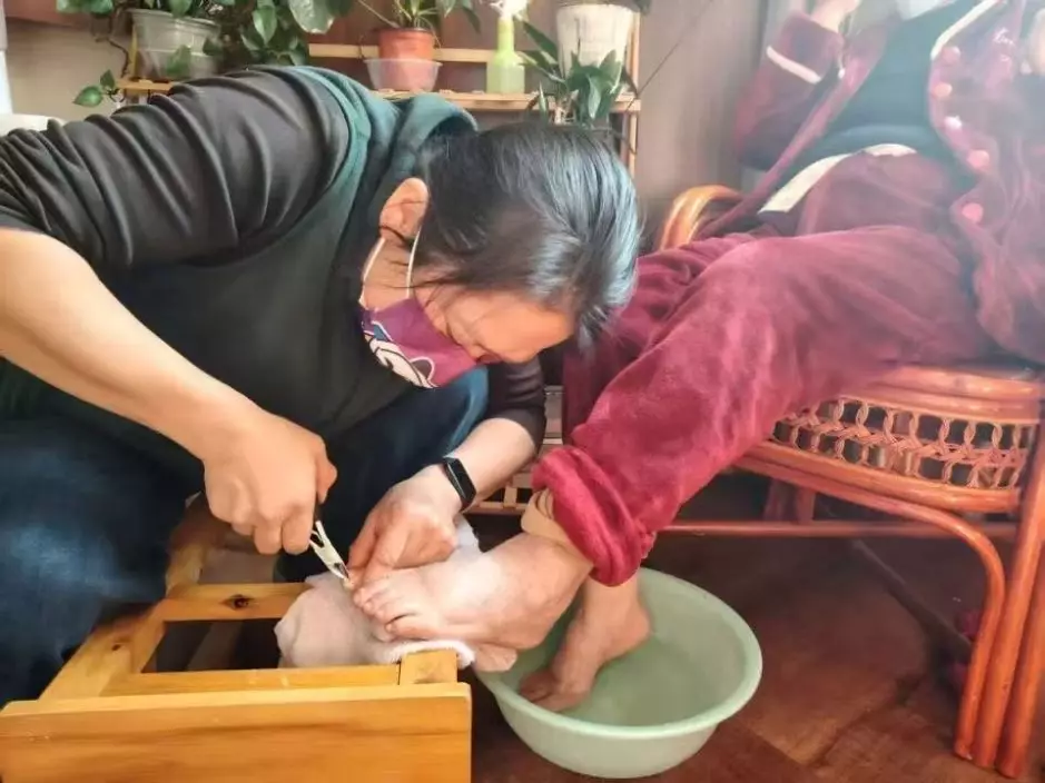 洗腳、搓腳、修甲、磨繭,許蓓全程都沒有戴手套。在她看來,戴手套會讓長者覺得被嫌棄。於是,出於對長者的尊重,她16年來堅持沒有戴手套。在蒼水社區,這樣的畫面幾乎每天都在上演。這個常住人口約2700人的老城區,長者比例超過4成,80歲以上長者也不在少數。行動不便、視力模糊、厚繭、灰甲、變形趾甲,對年輕人來說只是小問題,對長者而言卻是難以啟齒的痛楚。於是,許蓓成了他們口中最親切的一聲「蓓蓓」,也是最貼心的「修腳師」。