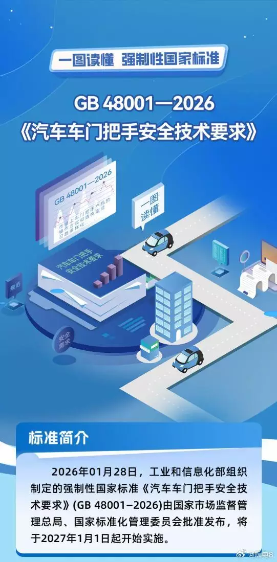 業內人士指出,標準的制定全面提升了車門把手的安全性能,對於引導和規範車門把手技術創新與產業應用、強化人員應急逃生與安全救援能力、築牢消費者生命安全防線、提升道路交通安全水平具有重要意義,為我國汽車產業高質量發展提供堅實技術支撐。