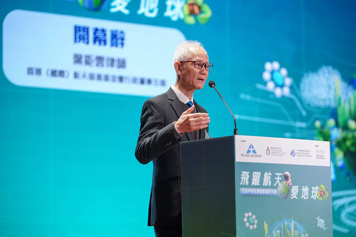 香港(國際)航天慈善基金會行政董事主席葉鉅雲律師在致辭時透露,基金會正全力與科大合作推動「碳載荷」項目。該項目總預算達6000萬港元,除獲創科局批出1500萬外,基金會正協助籌募餘下的4500萬經費,並呼籲各大機構慷慨支持。談及舉辦微電影大賽的願景,葉主席表示:「希望學生手中的鏡頭變成你們的望遠鏡,用影像記錄香港科技的光芒,喚起大眾愛護地球的初心和認識『新太空機遇』。」