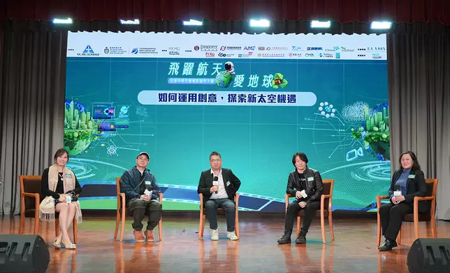 第二場論壇聚焦「如何運用創意,探索新太空機遇」。由項目總策劃、MEMO PLUS PR總監李彥儀女士主持,邀得MyTV Super原創內容主管林肯先生、AI動畫創作總監Ronald Leong、TechApple內容主管凌影先生及基金會行政董事會副主席羅紹碧女士同台對談。嘉賓們鼓勵學生以「敘事」為核心,結合生成式AI工具跨越技術門檻,將科學硬核知識轉化為具感染力的「新太空」故事。