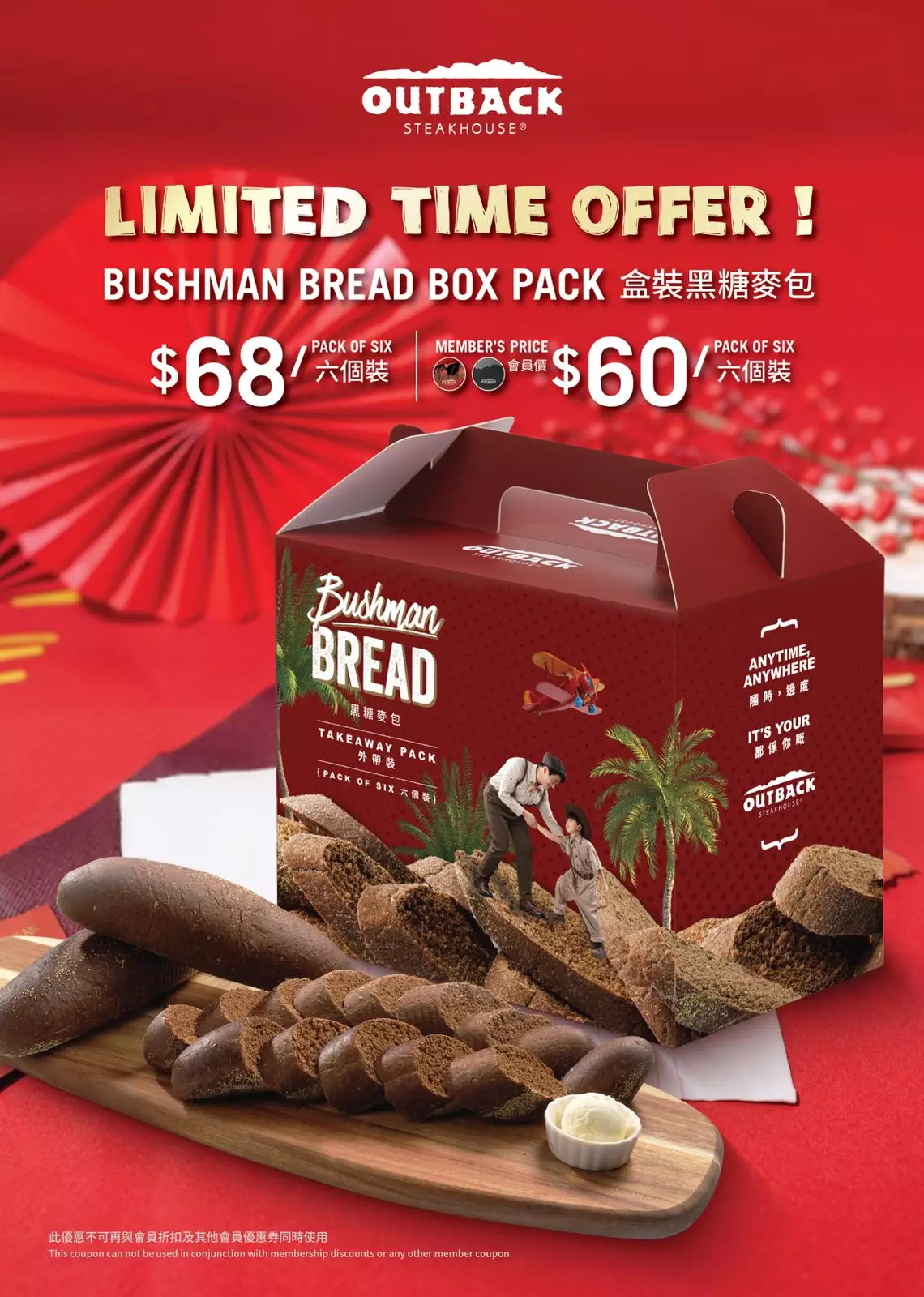 網上訂購:www.outback.com.hk/catering 人氣招牌黑糖麥包6條裝外帶盒裝優惠