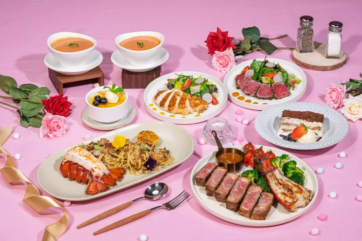 另可加HK$ 48加配情人節主題特色飲品, Pink Promise、Be Mine Bellini 及 Midnight Valentine。