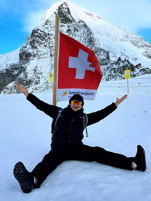 日前,李浩林在社交平台分享瑞士旅行點滴,大晒挑戰登山的照片。他先於觀景台拍照留念,之後換上全套雪地裝備,最終成功登上瑞士著名山峰——少女峰。相中可見他身穿厚厚雪衣,坐在雪地上難掩興奮之情,身旁更插着一支國旗,畫面相當有紀念價值。