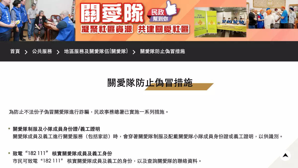 九龍城民政處對受影響人士造成不便致歉,並已設立熱線(2712 9182)供有關人士查詢,市民亦可瀏覽關愛隊專題網頁(www.had.gov.hk/tc/public_services/district_services_community_care_teams/fraud_prevention.htm)了解關愛隊防止偽冒措施。關愛隊不會主動向居民索取銀行戶口號碼,而成員和義工在履行職務期間,會穿上關愛隊制服及配戴關愛隊小隊成員身份證明或義工證明,以供識別。九龍城民政處已就事件向該關愛隊發信,要求該關愛隊提高警覺及加強保安措施,並嚴格按指引妥善處理及保密個人資料。民政事務總署亦已向所有關愛隊作出了提醒。