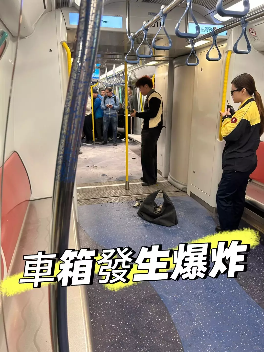 有乘客在小紅書分享,指列車當時正前往荃灣西站,行車期間突然充電寶爆炸冒煙,形容當時「嚇死全車人....又未落得車」而消防在乘客落車後迅速到達現場。據悉,在消防未到達時,車廂內的乘客用滅火筒將火救熄。