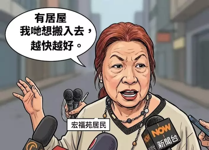 宏福苑居民張小姐認為,跟長期住過渡性房屋相比,希望更快上樓。她續指,希望越快越好、快得一秒得一秒,因為現在真的住得不好。