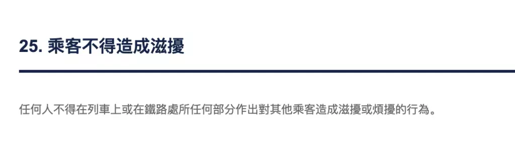 《港鐵附例》第25條:所有乘客不得隨意製造滋擾。港鐵附例截圖