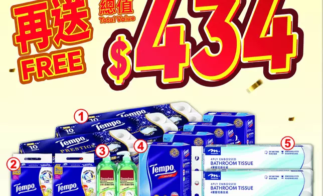 ***滴露全能抗菌/天然極淨洗衣旋珠 56 粒裝買 2 送 2 (只限同款同價錢產品),再送 3 條得寶閃鑽 4 層衛生紙 10 卷裝(總值$144)、2 袋得寶抽取式萬用廚紙 3 包裝(總值$60)、2 支詩樂氏超濃縮洗潔精 1 公升(總值$60)、4 袋得寶抽取式面紙 4 包裝(總值$120)及 2 條 Meadows4 層衛生紙 12 卷裝 (總值 $50) (贈品價值以標準價計算 )