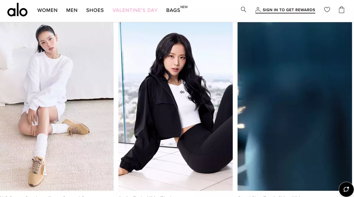 Jisoo代言alo。alo官網截圖