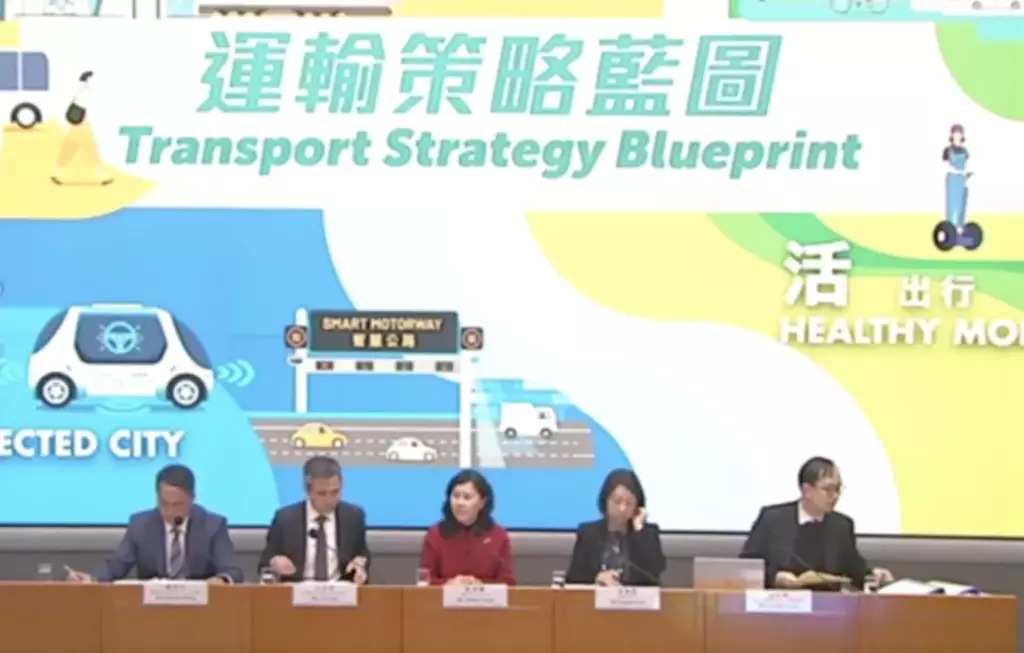 當局表示,《運輸策略藍圖》,以「落實以人為本、強化內聯外通、促進高效出行、擁抱綠色生活」為願景,確立未來交通運輸發展的三大主題,並提出6大策略及共25項具體建議,推動香港的交通運輸持續發展。