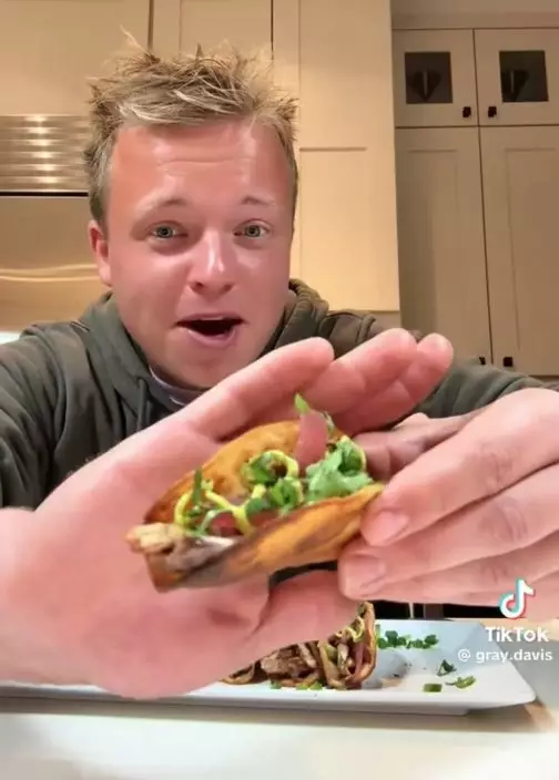 網紅撿凍僵綠鬣蜥回家烹煮成Taco。TikTok圖片gray.davis