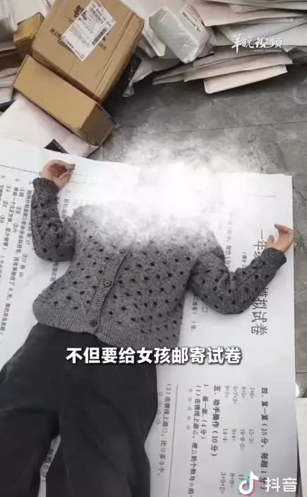 影片曝光後,意外引發全國網友「報復式投餵」。有網民循影片線索找到女童父母經營的服裝店地址,隨即展開「行動」。不少人陸續寄來寒假功課、試卷、練習冊及練字帖,甚至連戒尺也一併寄出。畫面所見,快遞員頻頻上門,店內包裹堆積如山,女童對此面露苦笑,直言「拆也拆不完,做也做不完」。