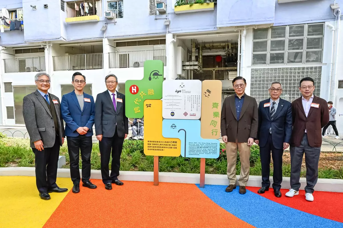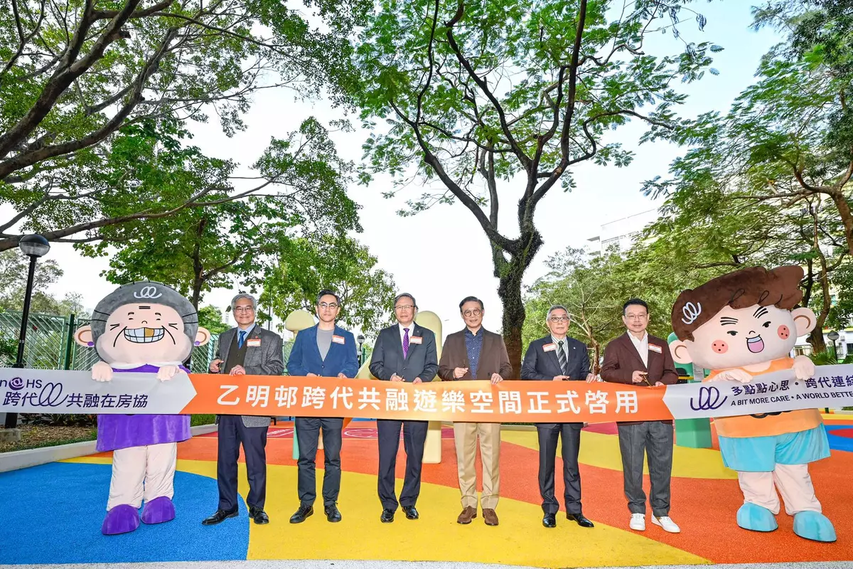 位於沙田乙明邨的休憩設施「跨代共融遊樂空間」啟用,項目由房協及理工大學社會創新設計院合作規劃,香港賽馬會慈善信託基金捐助,支持遊樂空間的設計。