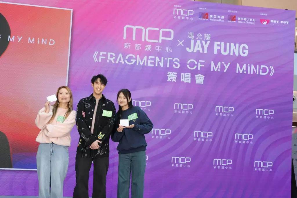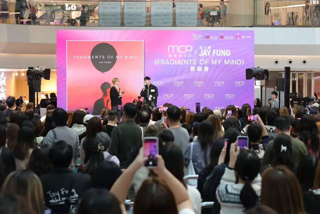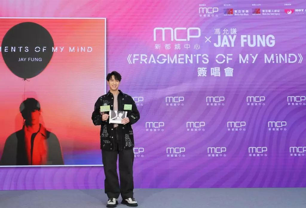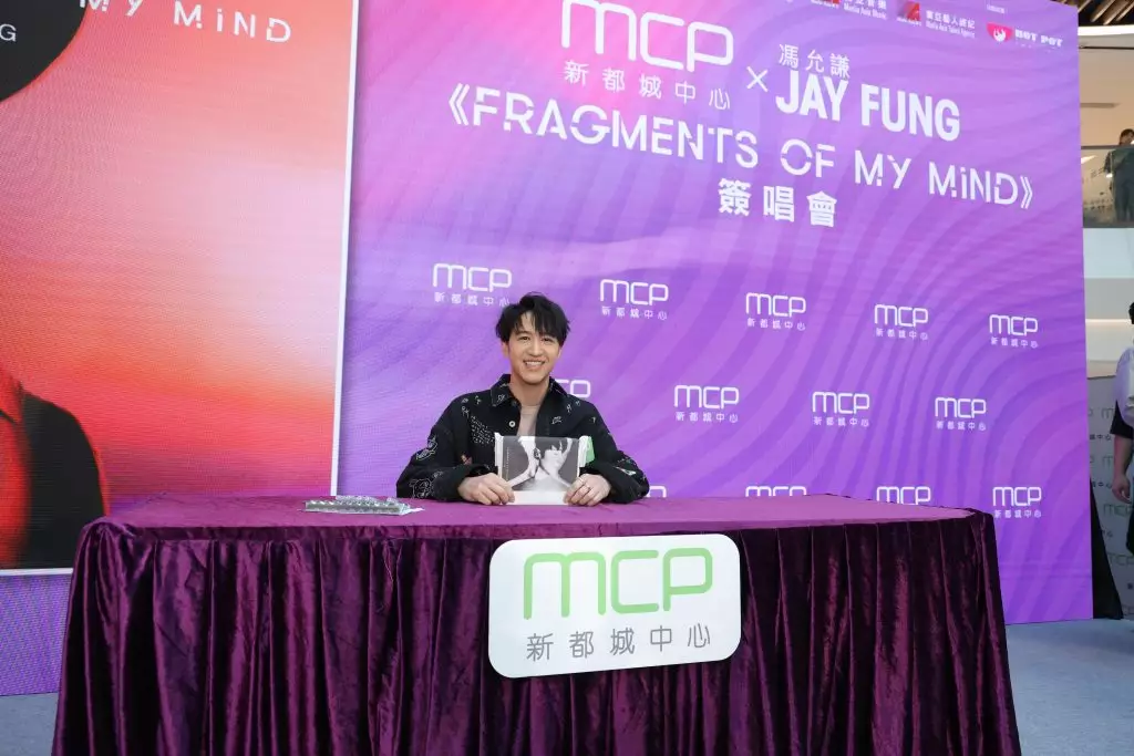 人氣男歌手及叱咜樂壇男歌手金獎得主Jay Fung馮允謙近日氣勢如虹!繼早前於頒獎禮榮獲男歌手金獎、及完成首個個人戶外演唱會外,更於近日推出全新專輯《FRAGMENTS OF MY MIND》。為了與樂迷分享喜訊,日前Jay Fung在恒基地產旗下商場將軍澳MCP新都城中心舉辦「MCP X JAY FUNG《FRAGMENTS OF MY MIND》簽唱會」。席間,Jay Fung即場分享奪金感受、演唱會點滴和暢談製作專輯的靈感及心路歷程,並與一眾粉絲大玩遊戲及演繹歌曲,與粉絲見面作近距離互動,並為新專輯送上簽名,為一眾粉絲帶來驚喜!