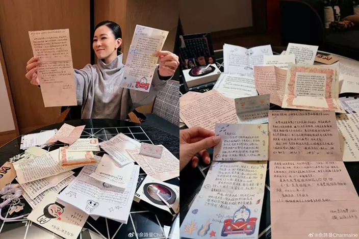 近日忙於工作的佘詩曼,即使在北京出席晚會領取「微博年度實力演員」獎項,仍心繫粉絲。她日前在社交平台分享,熬夜細讀粉絲來信,更特別點名讚揚兩位成績優異的「學霸粉絲」,公開二人的亮眼成績單,並隔空向他們頒發獎項以作鼓勵。