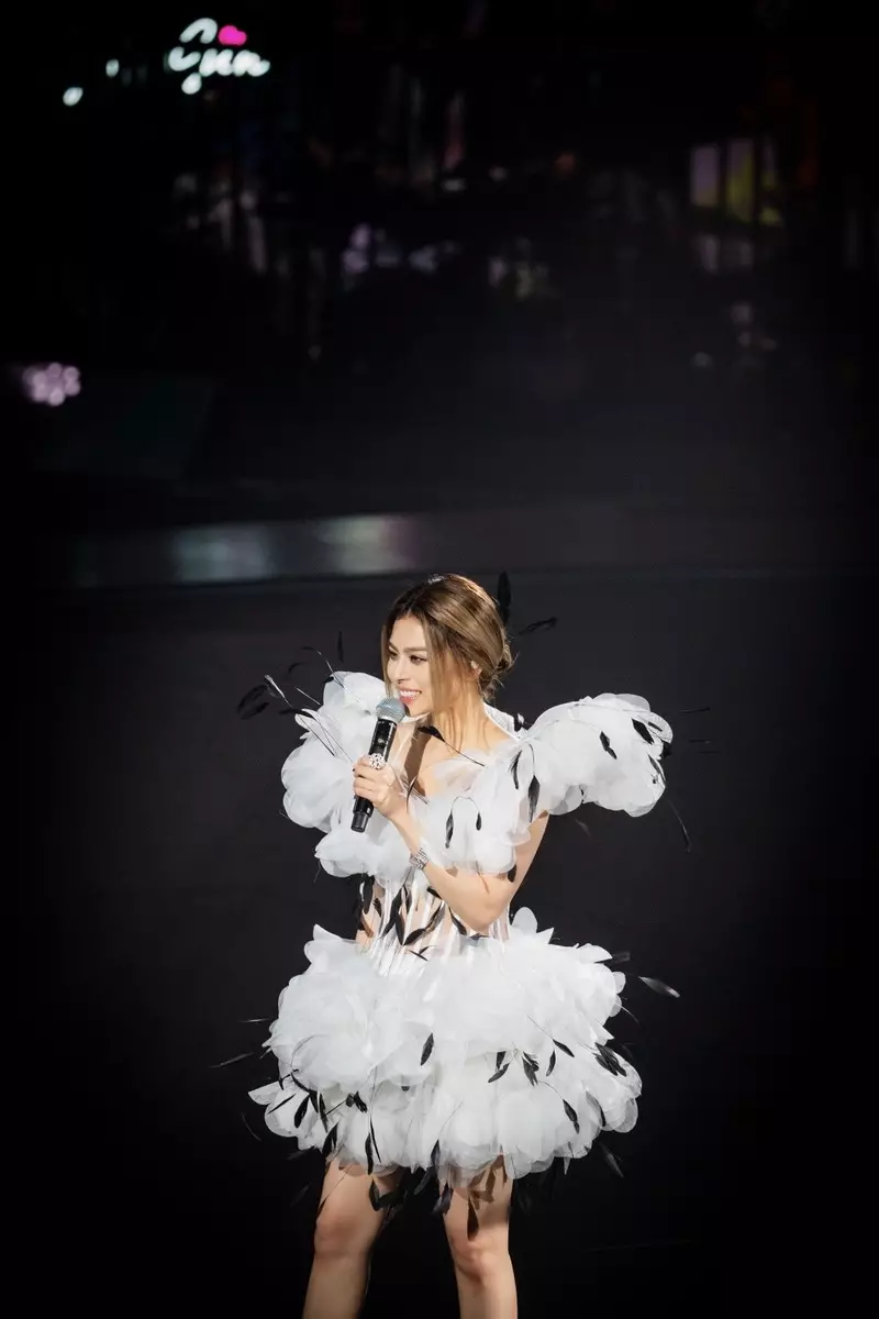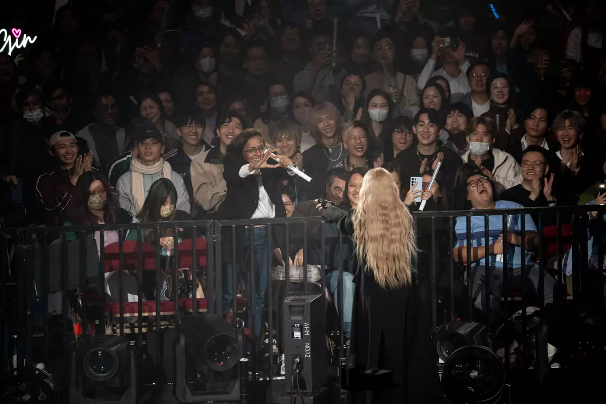 講到情深處,場內大熒幕播出訪談形式的短片,罕有剖白內心最脆弱的一面。Gin眼濕濕提到曾經因為飼養的愛貓離世,打擊大到「脆弱到唔想做人」,「估唔到咁多年,一講起佢都會咁……經歷咗嗰段失去,去到谷底,我先至慢慢打開個心同人connect。」她認為「失去」是人的共通語言,現在會透過音樂跟大家連結,坦言很珍惜平靜的時刻,因為對現代人來說這是十分奢侈。